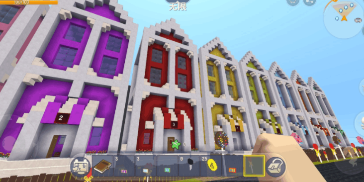 在这张地图当中主要的玩法是休闲养成小伙伴们,如果想要当打工仔赚钱就可以去种地或者是狩猎怪物,小伙伴们也可以在糖果店内打工,也可以购买车辆,在这张场景地图当中有着非常多的居民楼,但是想要进入这些居民楼,小伙伴们必须要购买钥匙,才能够进入,每一栋楼的颜色都不一样,各栋居民楼的颜色都非常的鲜艳,因此充满了童话小镇当中的糖果色彩。