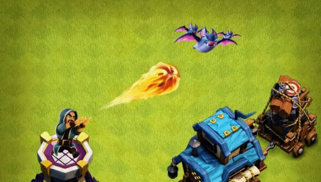 第一种,蝙蝠龙球。11本中,拥有群伤功能的建筑不多,因此这个流派就比较实用,可以在开始的时候就重点进攻法师塔这类有群伤的建筑。等到非防御建筑拆除后,就可以利用后续部队往内部推进了。