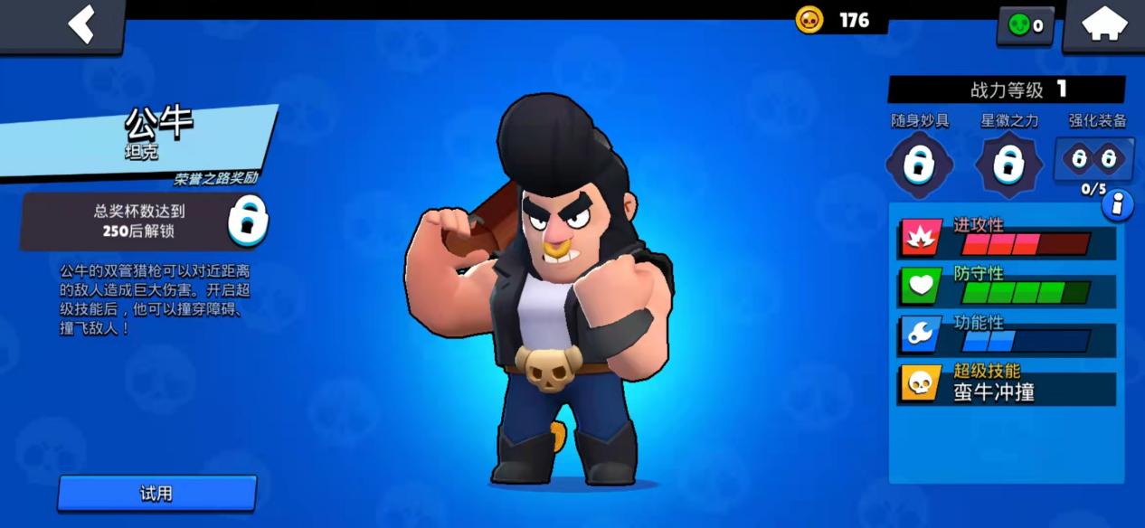 与此同时,如果雪莉霰弹伤害全都作用在一个人身上的时候,就将会有400左右的伤害。除了以上两个英雄外,还有个英雄的性价比不错,值得玩家去培养,他便是公牛,事实上,公牛的攻击方式与雪莉差不多,但他比雪莉的血量更足,不过他没有雪莉保命式的大招,相反,其大招要是用不好,多半就是送死。
