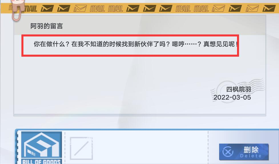 邮件之中,“四枫院羽”一改往日闹渣渣的性格,罕见的问候起了游戏日报君,并且表示是不是在她不知道的时候找到了新的伙伴,结合“嗯哼...”这类语气词,能够想象得到她发邮件时的傲娇神情。