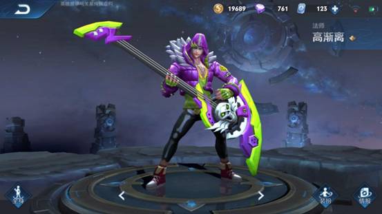 高渐离这个造型浑身上下都是比较非主流的,不只有发型非主流而已,整体荧光绿和荧光紫的结合,加上惨白的脸色和过大的嘴唇。不得不说严重拉低了高渐离的颜值,这个样子的高渐离已经被吐槽很多次了,简直就是非主流头子代表。