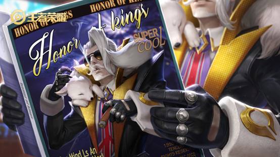 姜子牙不论在现实中还是游戏里,都给了我们一种上了年纪,德高望重的老人形象。但是在时尚教父这款皮肤之中,姜子牙则是变成了一个非常讲究的时尚人士。衣着和发行都相当的有范,而且手上还拿着自己照片为封面的海报,有点自恋属性。