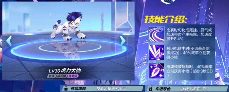 首先车队宠物就是指我们在游戏当中通过车队游戏代币兑换的几只宠物,小伙伴们提到车队宠物,可能第一想到的就是鹿力大仙,这个宠物对于当前的游戏版本来说已经过时了,它的主要核心技能也就是它的三技能,每4次使用氮气或者是道具后,下一次氮气最高速度会增加1.6千米每小时,这个技能在游戏当中触发的频率是非常稳定的,但是它的加成提供的效果其实并不好。
