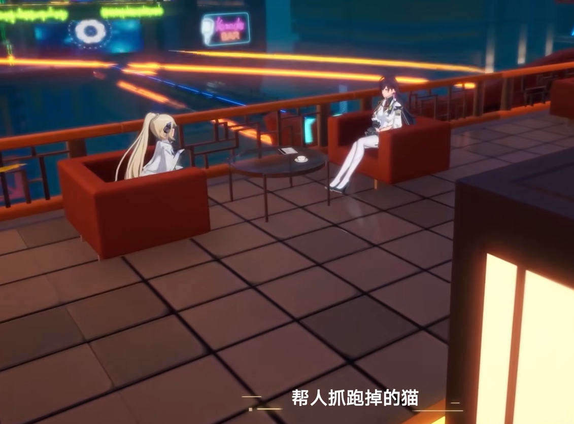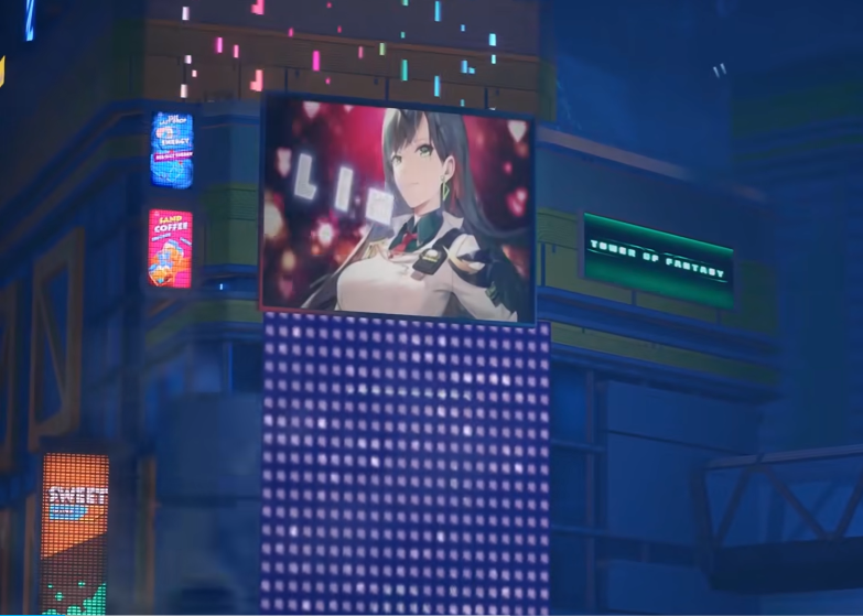 第一个细节是出现在凛夜大小姐喝咖啡时,她抬头看了看镜都赛博朋克风的都市大屏,上面播放的是作为城市英雄的凛夜自己,然后镜头展示了凛夜微妙的表情,十分真实。