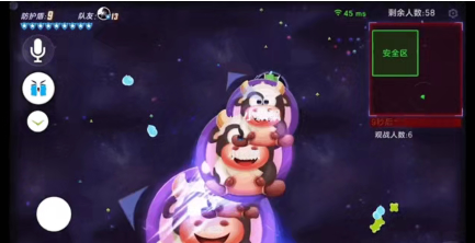 另外向队友方向可以直接点击快速分裂,分裂出来的球体比较多再选点击屏幕,让本体停止不动快速按分裂键合球,这个时候本体会遗留出一前一后两个小球。如果对方手速比较快就算吃掉了我们前面的一个球,那么后面还剩下一个球体,所以大家不用担心会直接被淘汰,这也是实战当中非常有用的一个操作技巧。