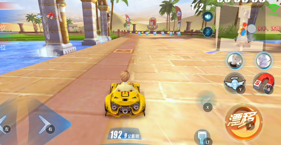 首先我们先来看第一条特殊的捷径,第一条特殊捷径一共有两种不同的跑法,但是这两种跑法都需要我们使用到蛋器。第一种跑法非常简单,我们可以直接开启氮气,从合适的位置飞跃,就可以落到对面去了,第2种过法比较复杂,需要我们注意一些细节,如果对自己的跑法不太自信的小伙伴可以选择第一种比较简单的,如果对自己的操作很有信心的话,那么我们可以选用比较复杂的操作。