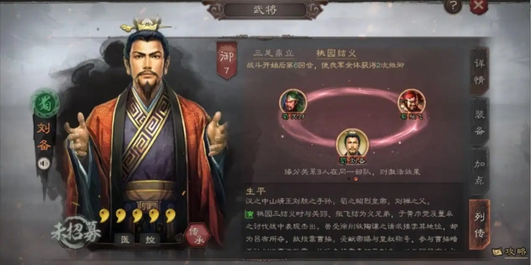 再来看看禁疗策略,由于刘备通常采取陷阱战术,他有两种高恢复战术,这可以为全军的耐力提供有力的保障。在游戏中,有禁止的治疗方法和将军。追伤就是对有40%几率对目标造成2轮禁止治疗。在所有方向过度收集,对敌人造成2次武器攻击。如果处于休克状态,就会导致禁止治疗状态。闭月技能就是随机选择一个敌人,如果最高的力量就会引起混乱,如果最高智力将导致贫困。否则,将导致虚弱并禁止治疗1轮。上述方法可以有效控制桃园首发输出和控制阵容。玩家在匹配阵容时可以使用上述方法。如果您不知道阵容的详细匹配情况,可以留言哦。如果你有相关的战斗报告,可以一起分享哦。