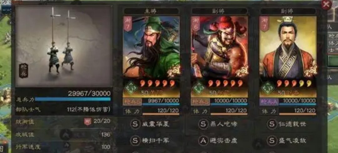 大家好,这里是爱玩手游的游戏日报小夕。由于桃园阵法有许多控制方法影响敌人的方法的发射。所以当程普受伤时,他有可能消除自己的负面影响,让随机的敌人进入威慑状态。夏侯惇提高了指挥能力。每次他受到武器伤害时,他都有机会对2个敌人造成武器伤害。