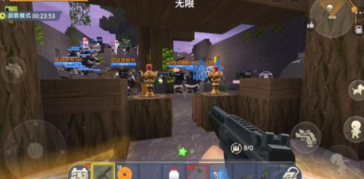 当我们在进入地图之后就会来到一个房间,房间外面就是大批的僵尸,小伙伴们只有阻挡这些僵尸成功的进入才能够获得胜利。在初始情况下,小伙伴们只能够获得一把步枪。但在逐步的击杀僵尸的过程当中,就可以获得更多杀伤力,强大的道具比子弹数量有限,攻击力又差的步枪好多了。