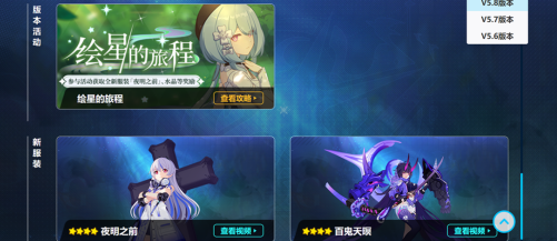 除此之爱,在现如今的游戏中,也可以看到UI有一定的修改,可以快速查阅几个版本的更新内容,以及最近的圣痕角色之类的信息,通过切换历史版本,查看以往内容。