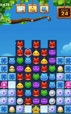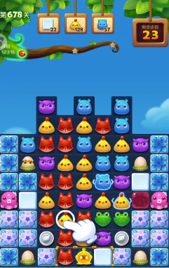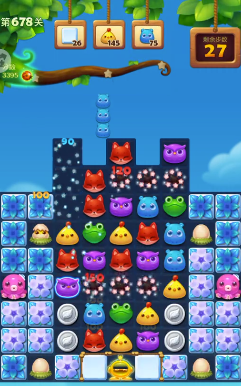 大家好,这里是游戏日报云澈。在开心消消乐这一款游戏第678关,目前大家在关卡里面最主要的目标还是消除掉冰块,包括解决掉关卡当中的黄色小鸡和蓝色的河马。有的关卡会出现一些染色体,如果这些元素不能完成消除可以使用染色体进行染色,快速完成对重点目标的消除。