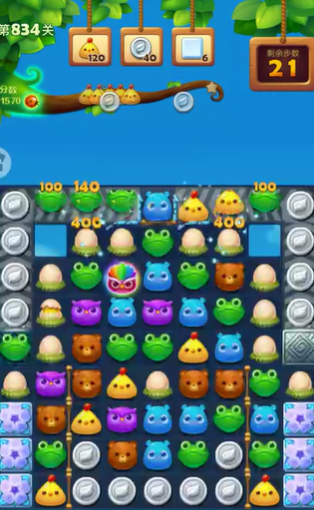 只有大量消除中间的元素才有更多的动物的下降,下降的时候还会下降一些银币,这样可以快速完成对动物的收集。在通关的时候有些特效动物可能进行了错位,所以一定要提前关卡清楚这些动物掉落的点位,如果能够尽量让两个特效动物凑在一起进行交换是最好的,可以节约很多的步骤数轻松完成消除目标。