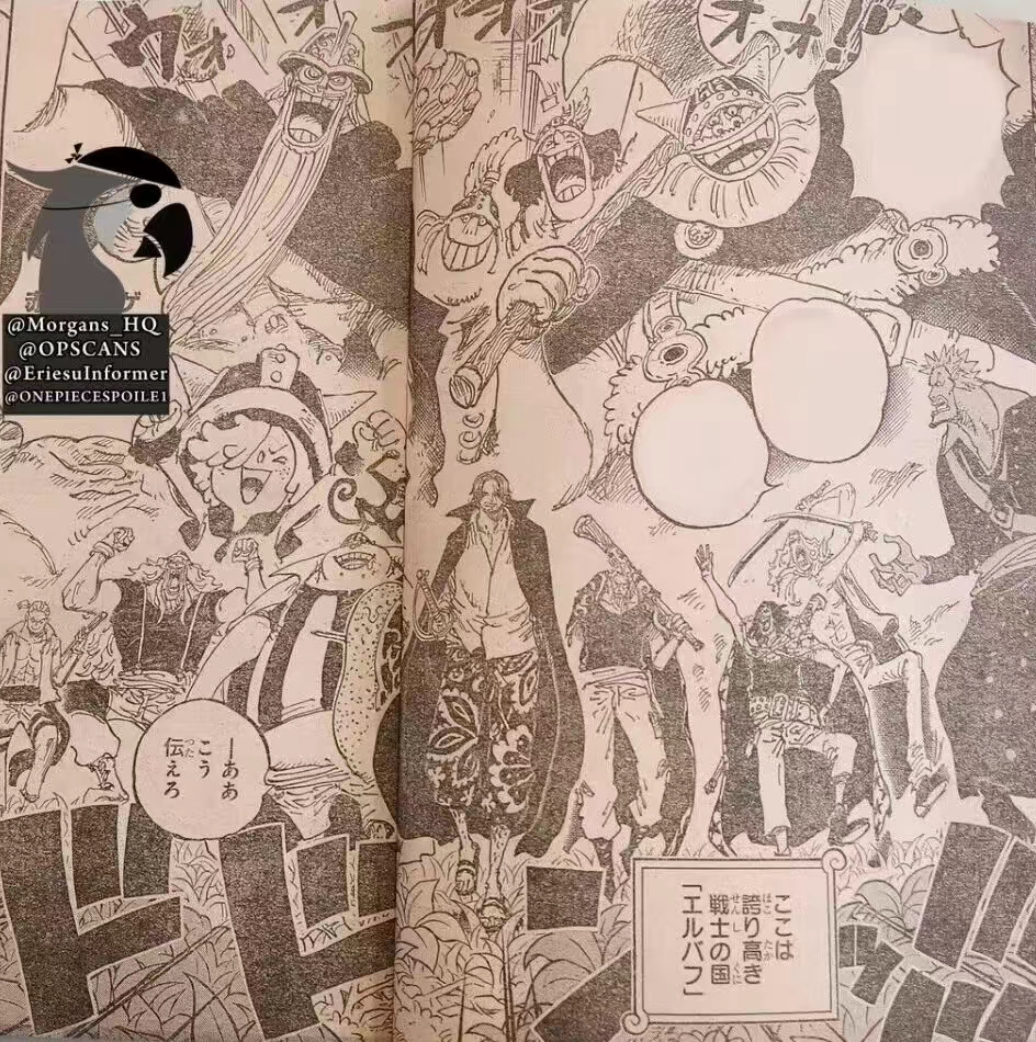 然而,这一话的“倒霉蛋”并不止路飞,还有基德。新世界的艾尔巴夫(巨人岛)上,红发接到了消息,说是“近海发生了战斗,基德海贼团攻打过来了”。于是,红发海贼团全员出动,带着艾尔巴夫的两位巨人船长,准备跟基德和基拉带领的海贼团开战。