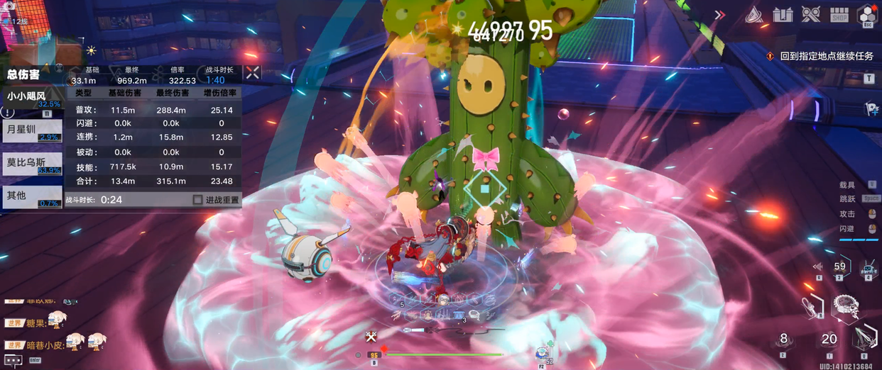 乌米三星的时候,玩家需要离开魔术演出的状态,这样则是得到了一个持续的增益效果,在小小飓风驻场的情况下,乌米是不需要驻场的,所以每次释放完技能之后,都直接切走。