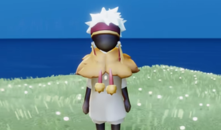 他带来的猫猫斗篷也和之前万圣节的猫猫斗篷不一样,是光遇的第一款分体式斗篷!斗篷的上半部分在腰上结束,像是一个小披肩在衣服上,尾巴单独从背后出来,颜色是棕色系为主,披肩部分是卡其色,尾巴部分的颜色是卡其色和深棕色排列的花纹,尾巴的单体非常大,不少光崽都称呼他为“小熊猫”。
