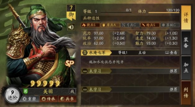 你可以选择的另一个技能基本上是破军还是拒水,这些适合不同阵法对射程、控制和伤害的需求。在兵书选择方面要分而治之,速战百战更为全面。不攻作为与关羽同时发展起来的技能,也是关羽的完美搭档。随着后一回合的指挥和关羽面板的使用,收益非常高,也是关羽团队中必不可少的灵魂技能。再加上一定的减伤和控制,一个强大的SP关羽团队出现了。