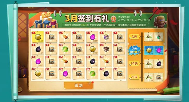 在3月1日-3月31日期间,右下角的互动中心的“日常签到”页面的福利也迎来了升级,玩家可从该页面获得宝石、资源、魔法道具“零食”等宝贵道具。