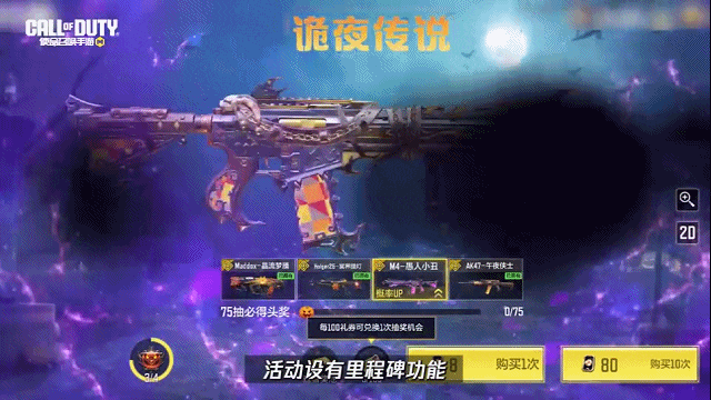 同时,该活动还有里程碑功能,每次抽奖可使里程碑进度+1,当里程碑进度达到最大值后,必定获得1个传说武器!当玩家获得传说武器后里程碑进度清空,继续抽奖可以继续累计里程碑进度。