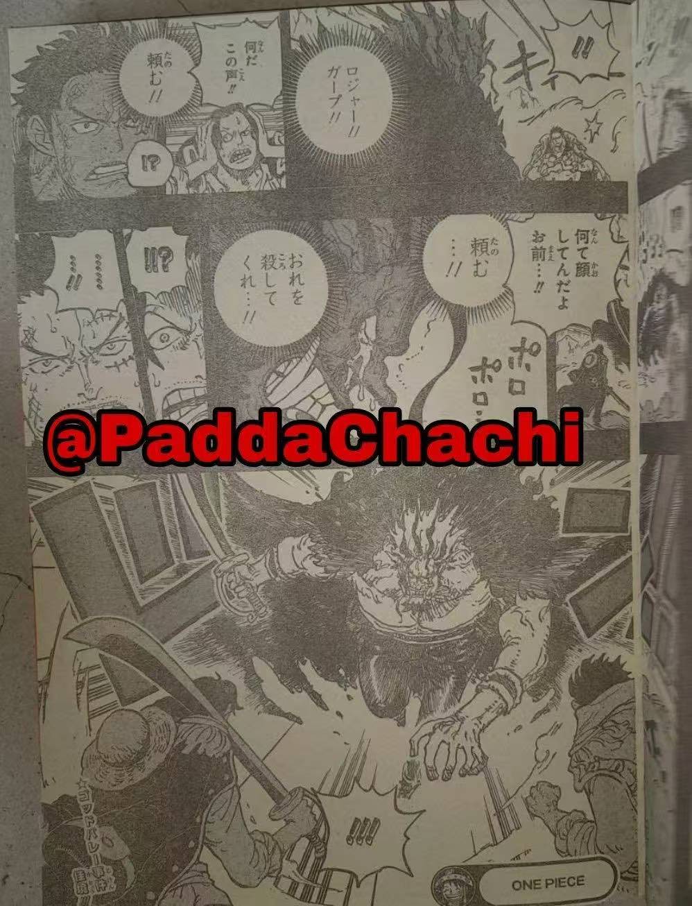 而危机关头,大熊赶到,用肉球果实拍飞了蒂奇母子,最后又拍飞了自己。在本话的末尾,卡普和罗杰两人大喊“放马过来,洛克斯!”,随后把恶魔洛克斯吸引了过来。卡普惊叹“你怎么变成了这幅德行”,罗杰喊着“可不能让你伤害我的伙伴”,而两人的脑海里突然响起了洛克斯的声音“卡普,罗杰,拜托你们杀了我!“