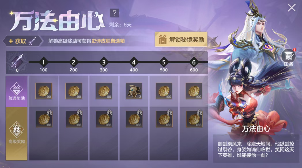 在11月14日-11月21日,限时秘境“万法由心”开启,玩家完成任务提升等级免费获取3天满级星盘特权卡、英雄碎片等奖励;付费30元可得史诗皮肤自选箱、头像自选箱;付费98元可额外获得传说皮肤自选箱、橙心钻等奖励。