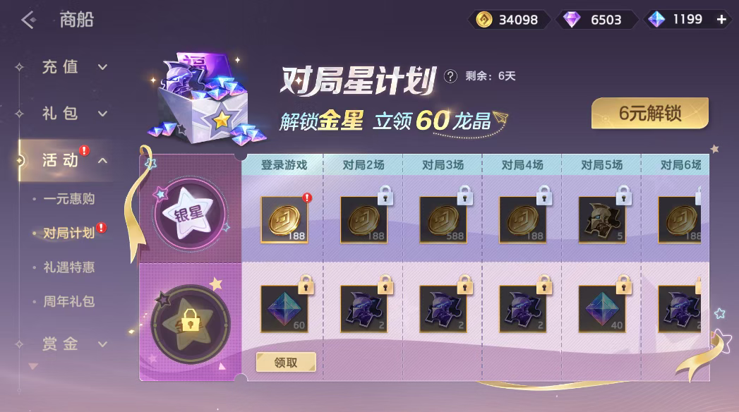 在11月19日-11月26日,“对局计划”活动开启,玩家完成对局任务提升等级免费获取英雄碎片、金币,付费6元解锁金星可以获得龙晶*120、龙魂祈福卡、皮肤碎片。