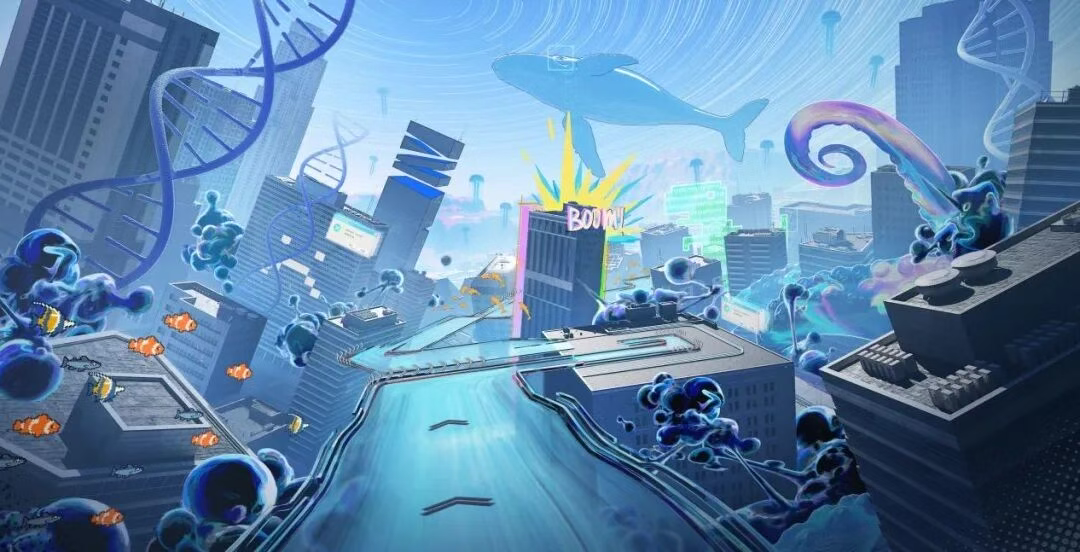 然后是四星地图“心渊”(1圈)。这张地图穿过阿尔法连接之门,便坠入与车手思绪共生的心渊幻境。初始是光影朦胧的表层水域,随后渐入深海,繁杂思绪与海水相融化作赛道上的危险挑战。在这场与内心混乱的对峙中,驾驶赛车冲过终点,所有喧嚣终归于平静。