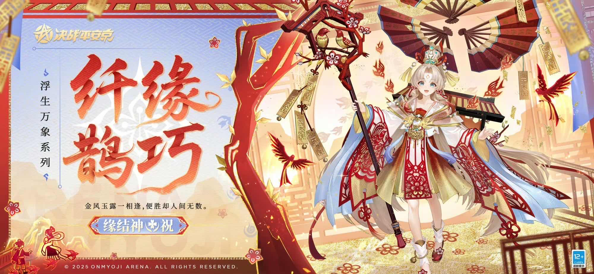 决战平安京预告缘结神新皮肤,在皮肤设计灵感中,月老缘结神降临人世,可以亲眼看看凡人的情缘是如何悄然生长的。她背着的木箱中上演着姻缘剪纸戏剧,运用头顶百家姓折扇找出天命一对,缘结神全新浮生万象系列限定皮肤「纤缘鹊巧」将在11月21日限时上架服装铺。