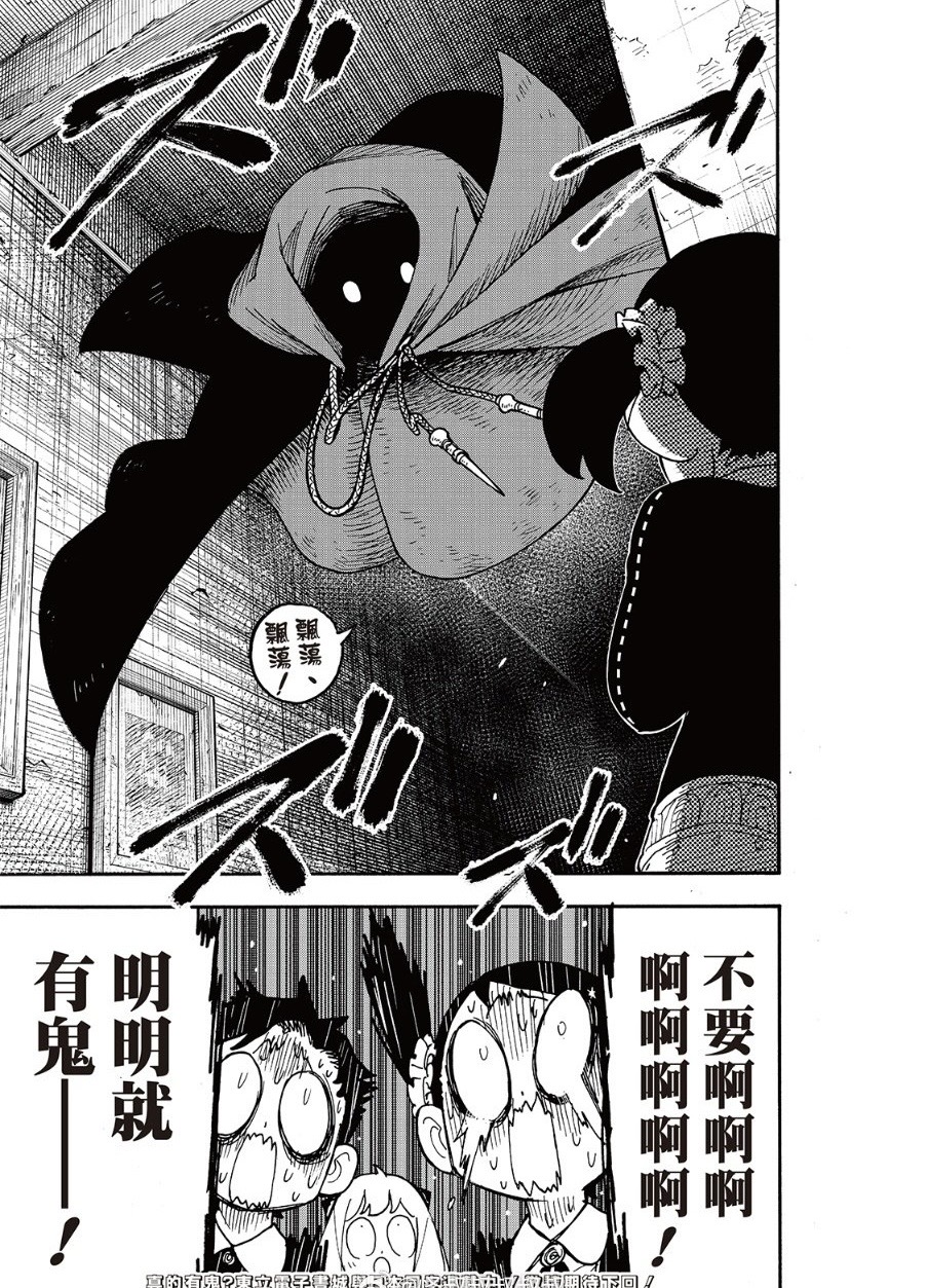 在125话的开头,阿尼亚想要去把凶手抓起来,却被贝姬拉走去上课。课后,同学们要去给优雅老师举办送别会,阿尼亚却说要去抓陷害优雅老师的凶手,康妮说去旧校舍说不定会有什么发现,大叔同学也赞同地说上次他们去旧校舍就看到一堆海报纸张。于是,阿尼亚、贝姬、次子、两跟班、康妮、大叔同学一起偷偷前去旧校舍调查。