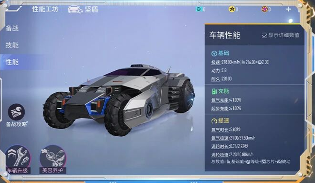 这辆赛车拥有全新大招“坚强后盾”,其效果为:加速推进,极速提升33km/h,持续7秒。加速开始时辅助1350米范围内非辅助位队友:若队友处于大招期间或大招已就绪则在大招结束后立即充满一管大招能量;若队友未处于大招期间且大招未就绪则立即充满一管大招能量。