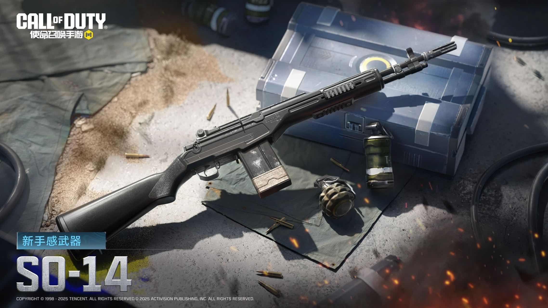 使命召唤手游预告全新手感武器,游戏内上线全新射手步枪SO-14即将正式列装,这把武器可以点放,装配特殊配件后也能全自动开火,且拥有不俗的压制火力和不错的稳定性。同时新版本中将会上线一辆可以遥控、可以涉水、哨兵模式下还能够自动锁敌的坦克。