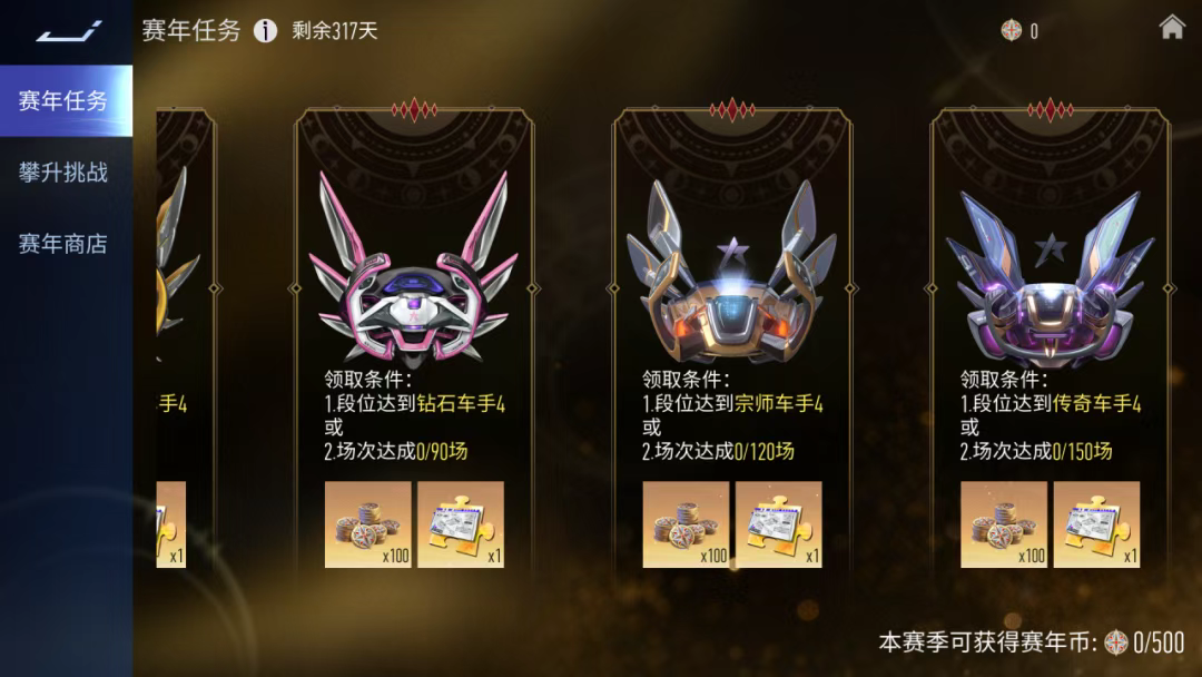 比如完成每个赛季达成段位或场次条件的赛年任务,即可领取对应的赛年币奖励。