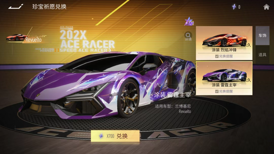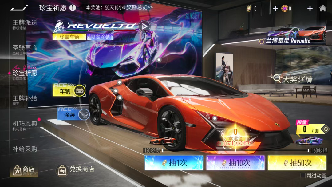 除了巅峰赛,在1月23日,兰博基尼 Revuelto正式登录珍宝祈愿!玩家不仅可以在其中抽取兰博基尼 Revuelto车辆及限定涂装“幻刃蛮牛”奖励,通过祈愿获取珍宝祈愿积分,还能解锁更多好礼。