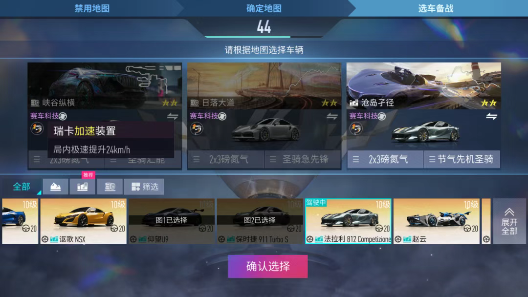 在巅峰赛-正式赛季中,巅峰个人赛模式将增加增益装置。暂时会提供两种装置供车手选择:瑞卡加速装置:局内极速提升24km/h。