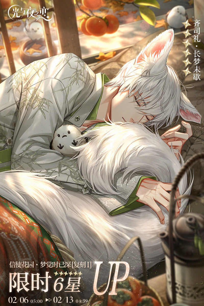 光与夜之恋限定收信活动返场,活动期间将开启限定复刻卡池【梦觉时已深・复刻Ⅰ】,[6星]灵犀 齐司礼・长梦未歇 将限时加入卡池并获得概率UP。活动将在2月6日正式开启,本次限时复刻结束后,该灵犀不会加入常驻收信・浮世同行。