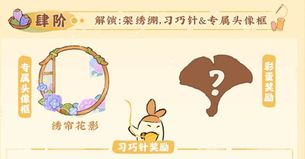 2月5日,“绮绣流年”建筑创物池以及“撷药荷锄归”山遇返场也将开启。本期“绮绣流年”限时UP创物池中,将会上架甲等建筑“挽风萦绣”。该建筑不仅能陈列展示绣品,还能制作建筑“云纱栅栏”,更有刺绣小游戏和镇馆之宝“一树繁华金羽扇”,还有专属头像框等待大家探索。