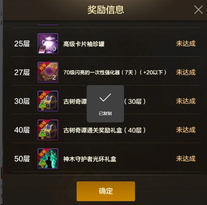 通关50层之后,玩家可获取征讨地区发电适配器礼盒(1)*400、斯卡迪的印章*30、70级闪亮的一次性强化器(7天)(+20以下)*4等奖励。