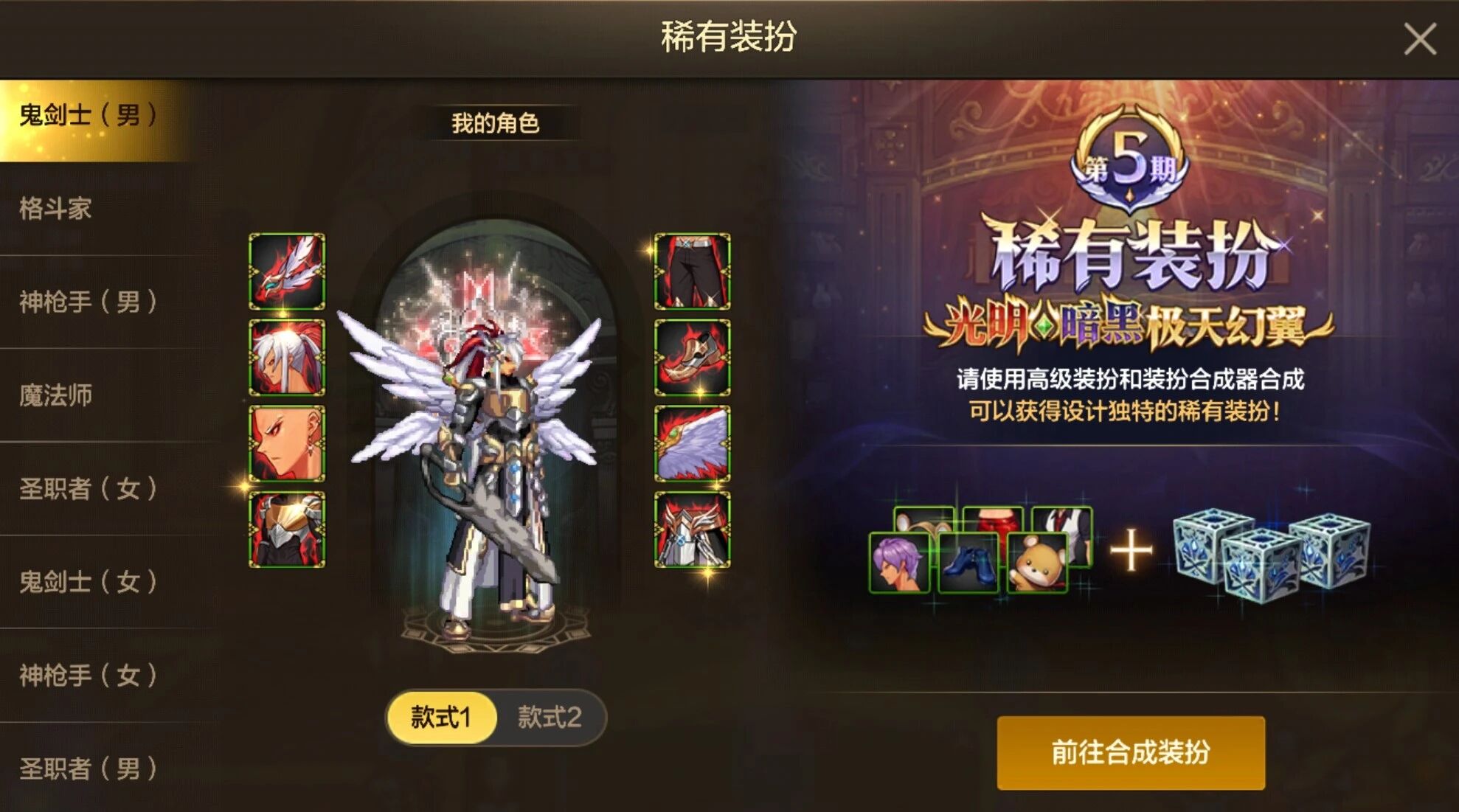 在新春版本里,第5期稀有装扮“极天幻翼”已炫丽登场,玩家可以使用高级装扮和装扮合成器进行合成。