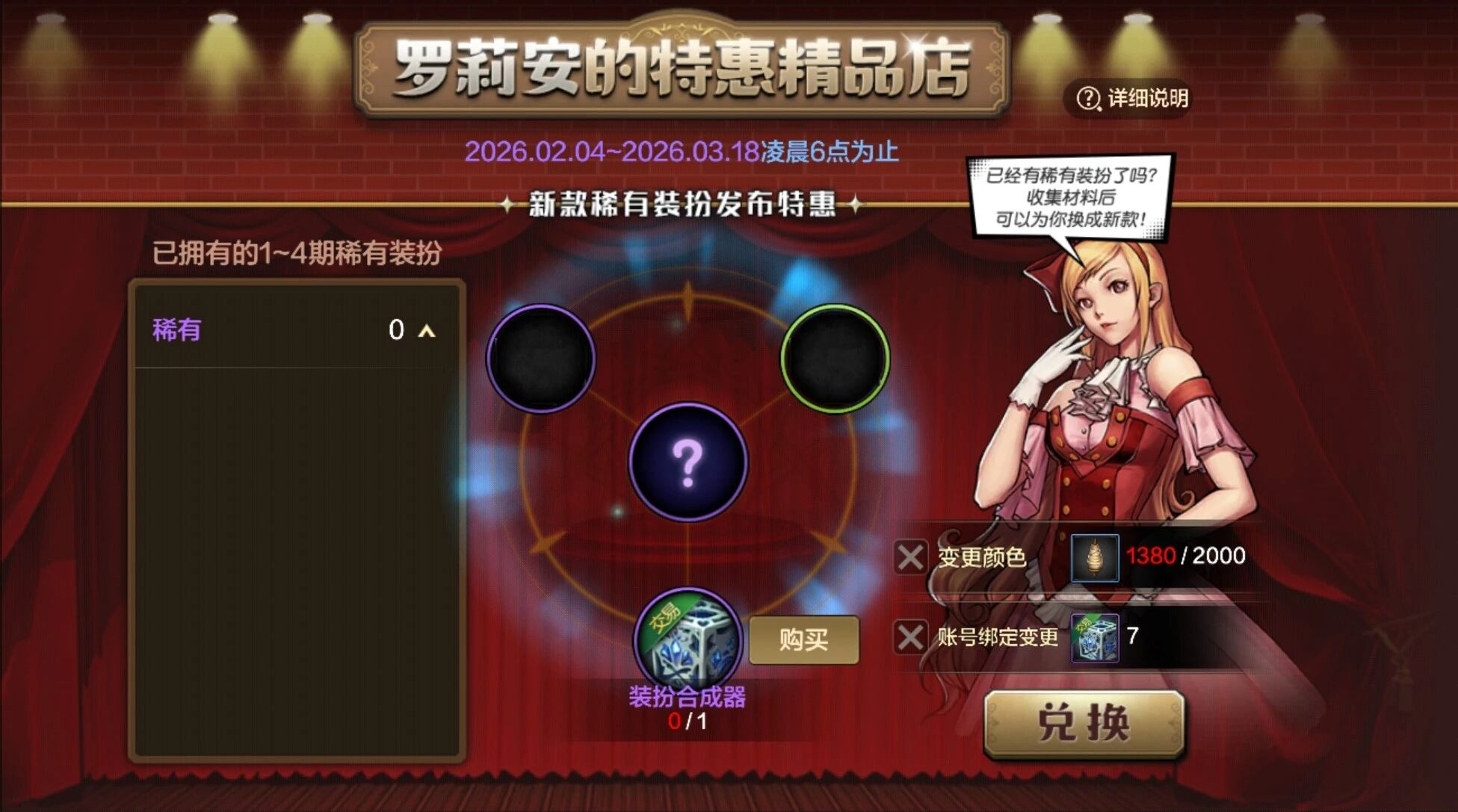 玩家也可参与“罗莉安的特惠精品店”活动,用往期稀有装扮成第5期稀有装扮。