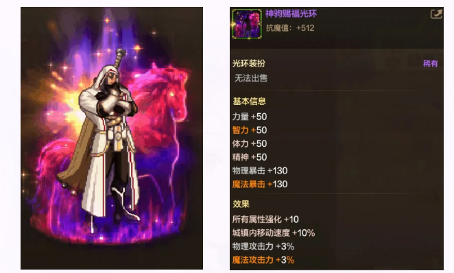 神驹赐福光环能带来512抗魔值的提升,属性加成全面,并且还提供了当前版本环境中稀缺的物理/魔法攻击力+3%,能为角色实力带来显著的提升。