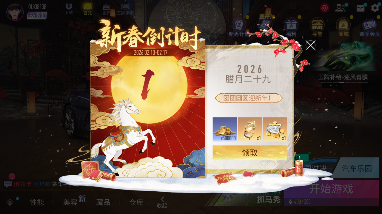 在2月10日-2月17日期间,“新春倒计时”活动上线,活动期间,速度节每天都有好礼相送,玩家记得上线领取奖励。