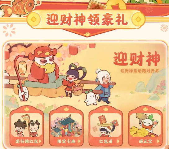 在2月20日-2月24日的红包雨活动里,财神会降下红包雨,接到红包的玩家可获得玎当、玥琅等奖励。