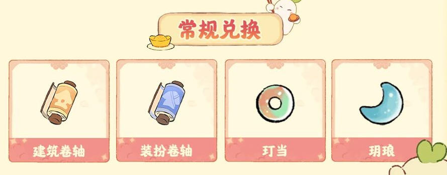 在本次活动中,玩家还可通过常规兑换获得:建筑卷轴、装扮卷轴、玎当、玥琅等奖励。