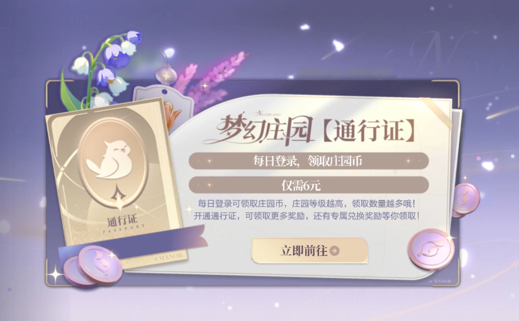 除了以上新内容外,在3月2日-3月15日上线的庄园通行证也很值得关注,该通行证仅需6元即可开通,开通后玩家每日登录即可获取庄园币、庄园碎片等奖励,使用庄园碎片即可兑换管家专属皮肤-篮球小鹦、自选书签等超多好礼。