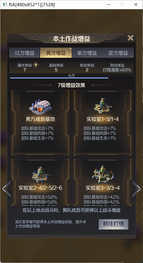 小雅攻略建议:因为附加增益的存在,如果本方本土建筑被占领过多,本方成员可以获得打怪速度提升的增益效果。指挥官可以趁着这个机会去更多的消灭变异兽,提升本土作战增益等级,一举夺回失去的建筑权。