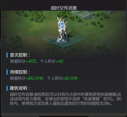 8个特殊建筑均有了可主动使用的技能。注意:需要盟主和官员才有权限使用建筑技能。