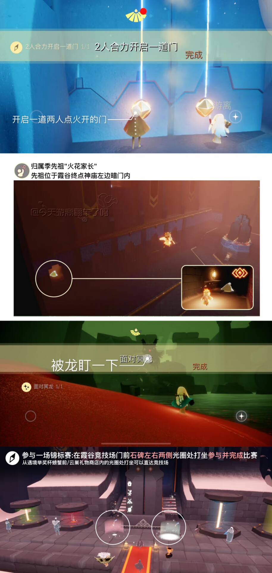 「参与锦标赛」进入霞谷竞技场,在神庙门前石碑左/右光圈处打坐参与并完成一场锦标赛