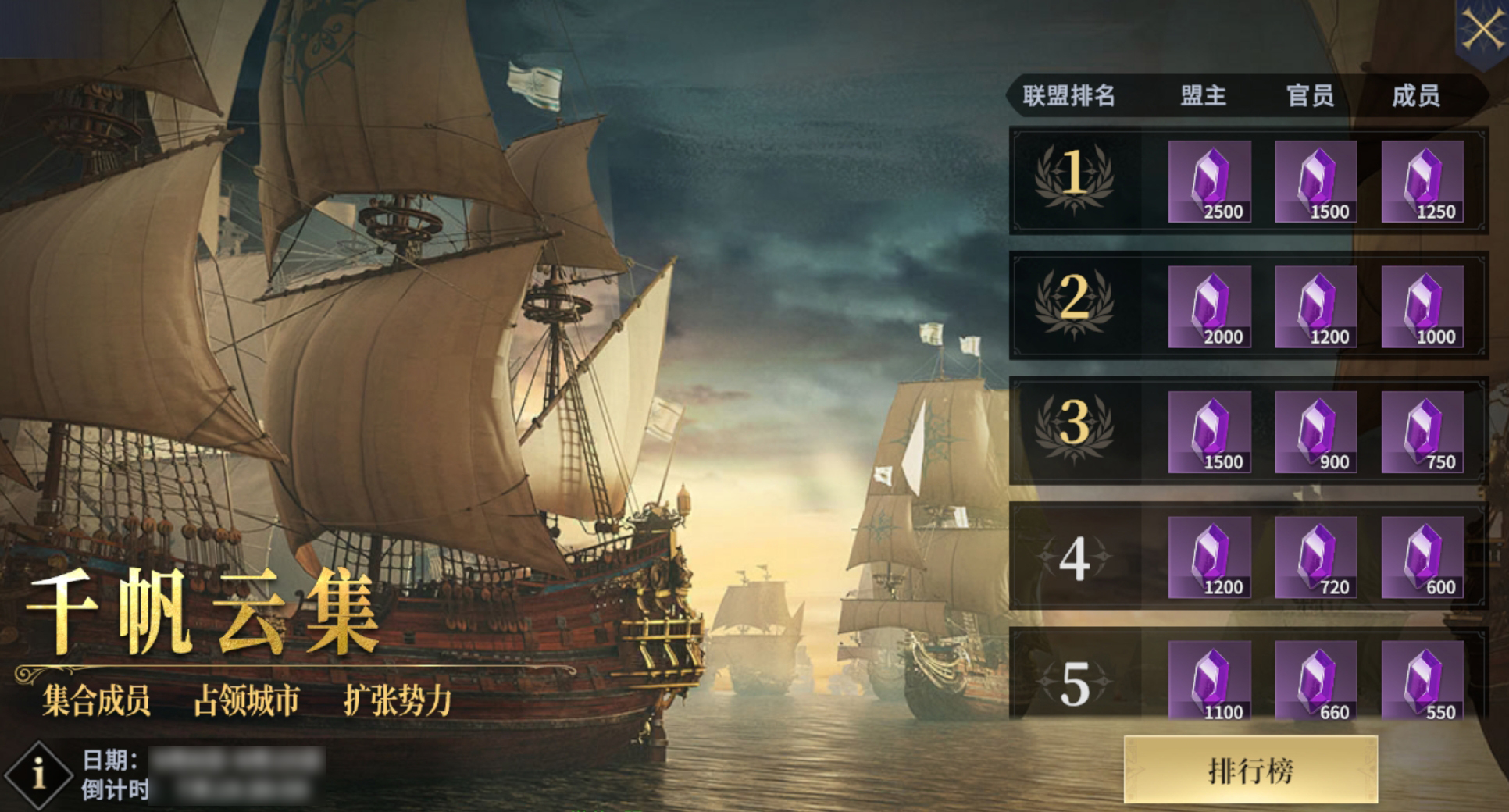 活动期间,联盟占领城市扩张领土,即可冲击势力值排行榜;全体成员均可获得海量紫钻奖励,排名越高,紫钻越多哦~