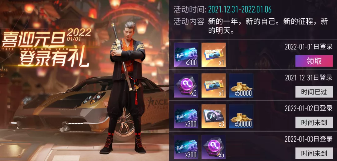 ◇『元旦有礼』12月31日~1月6日期间登录游戏,共可领取1500礼品点
