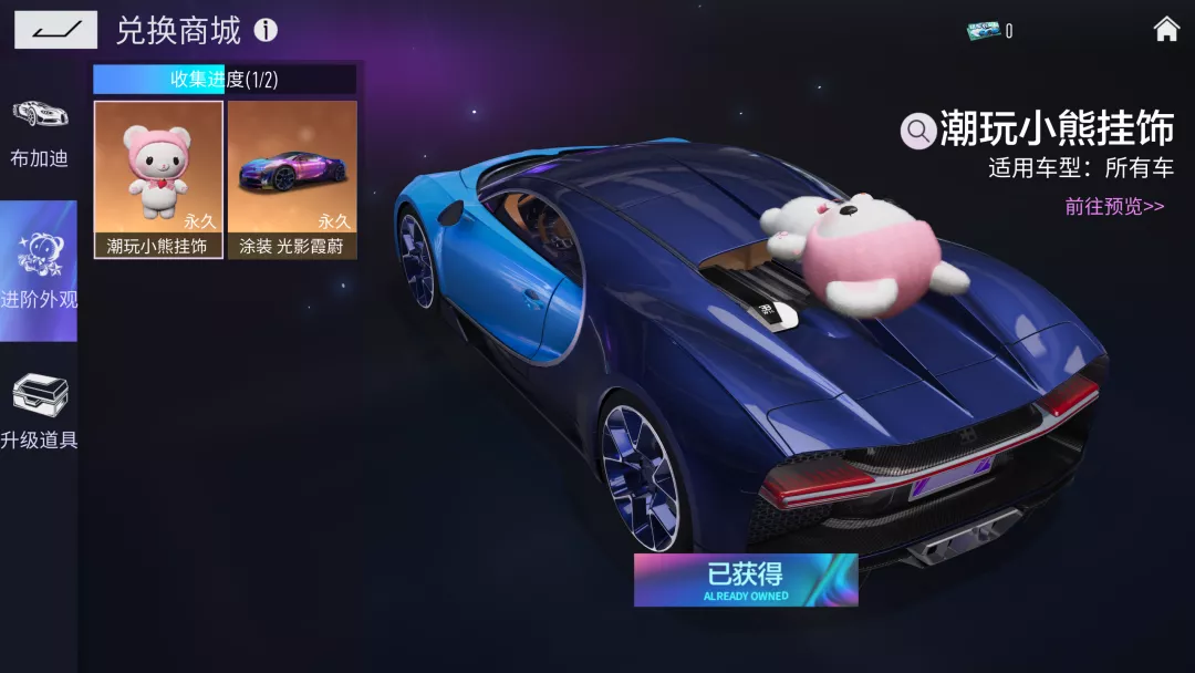 第一期配饰为“潮玩小熊挂饰”,可爱的外表搭配新颖的玩法,定能俘获各位车手们的心!车手们可以在“豪车租赁行”活动中通过抽奖或兑换获取。