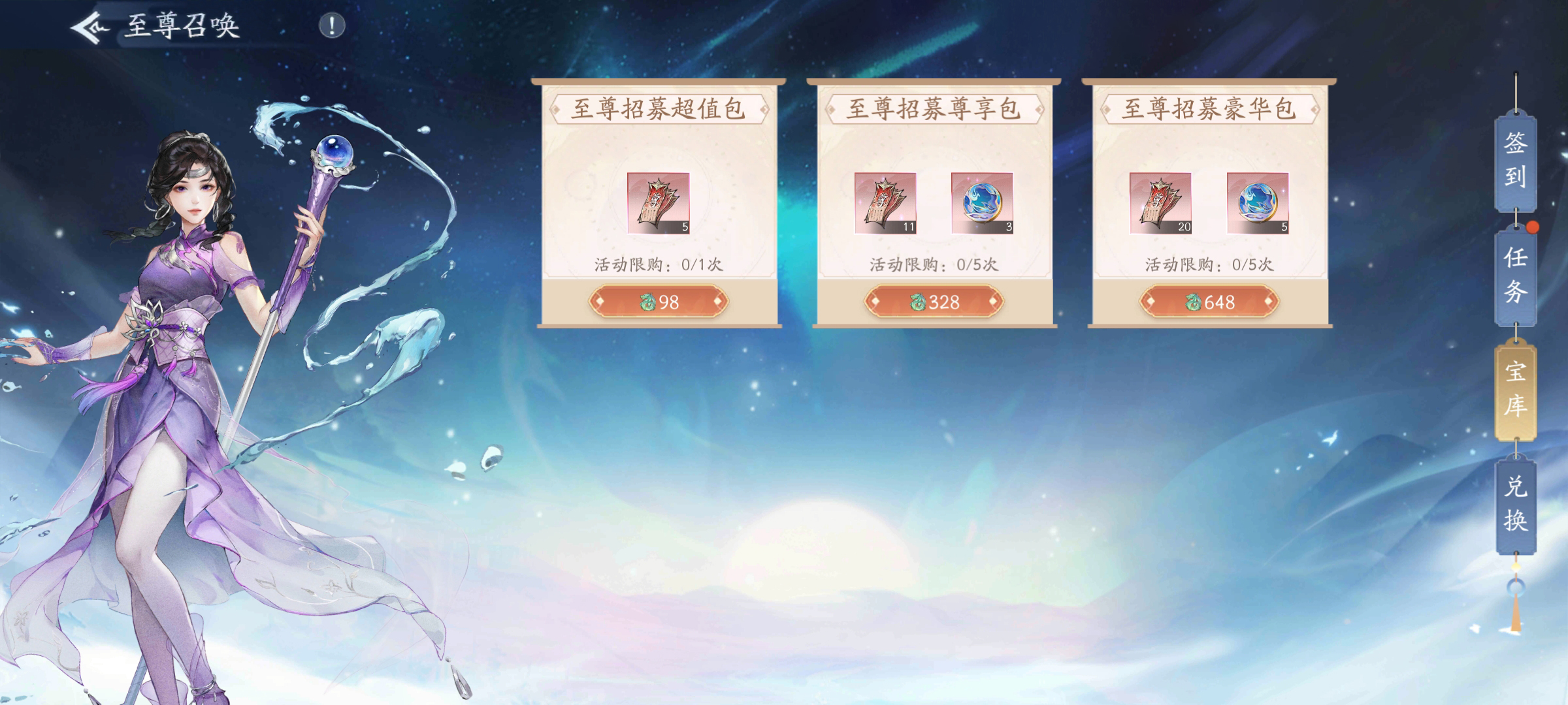 至尊招募超值礼包限时上架!大侠可以在宝库中进行购买。